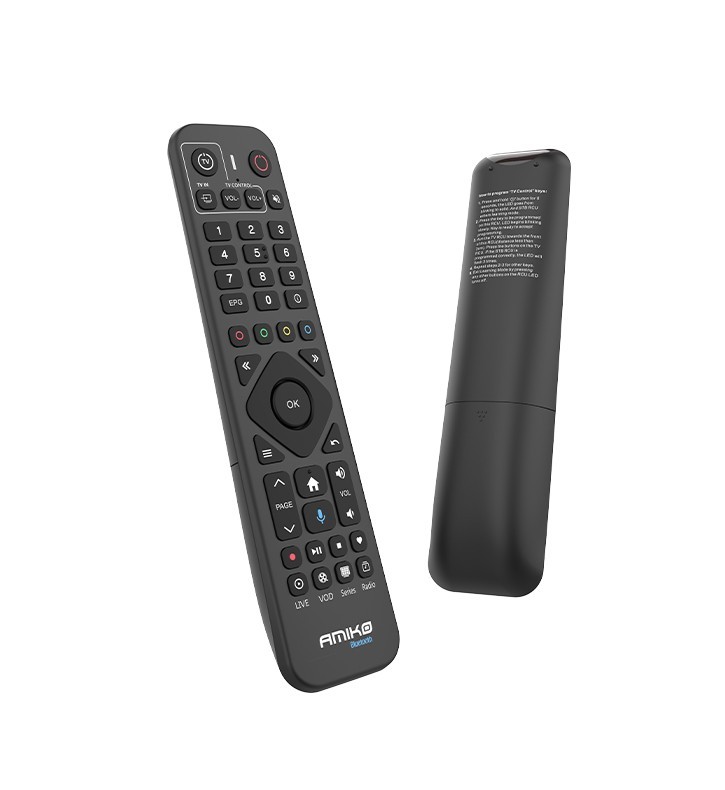 Amiko has recently launched its new range of remote controls that use Bluetooth technology to connect to devices. Thanks to Bluetooth technology, these remote controls offer a longer range and a more stable connection than traditional infrared remote controls, eliminating the need to aim directly at the device to be controlled.