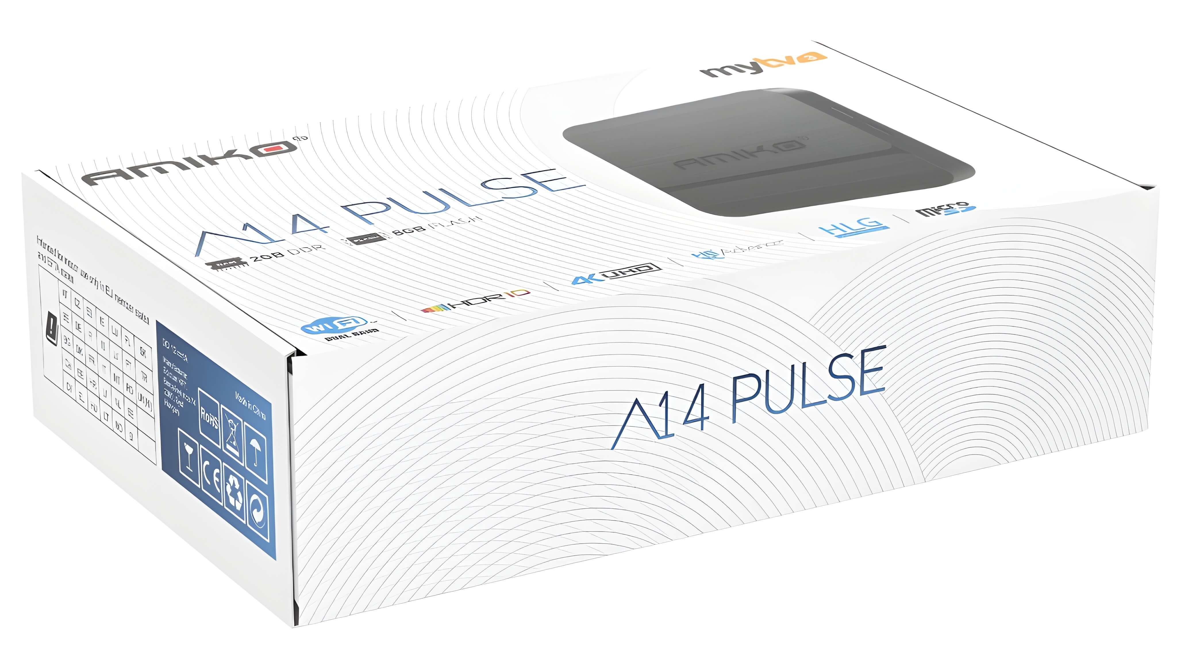 O Amiko A14 Pulse Android 14 OTT 4K Media Streamer tem um design moderno e compacto, com acabamento premium, pensado para se integrar facilmente na tua sala. Não precisas de reorganizar o espaço: colocas junto à TV e fica discreto, com uma estética cuidada.